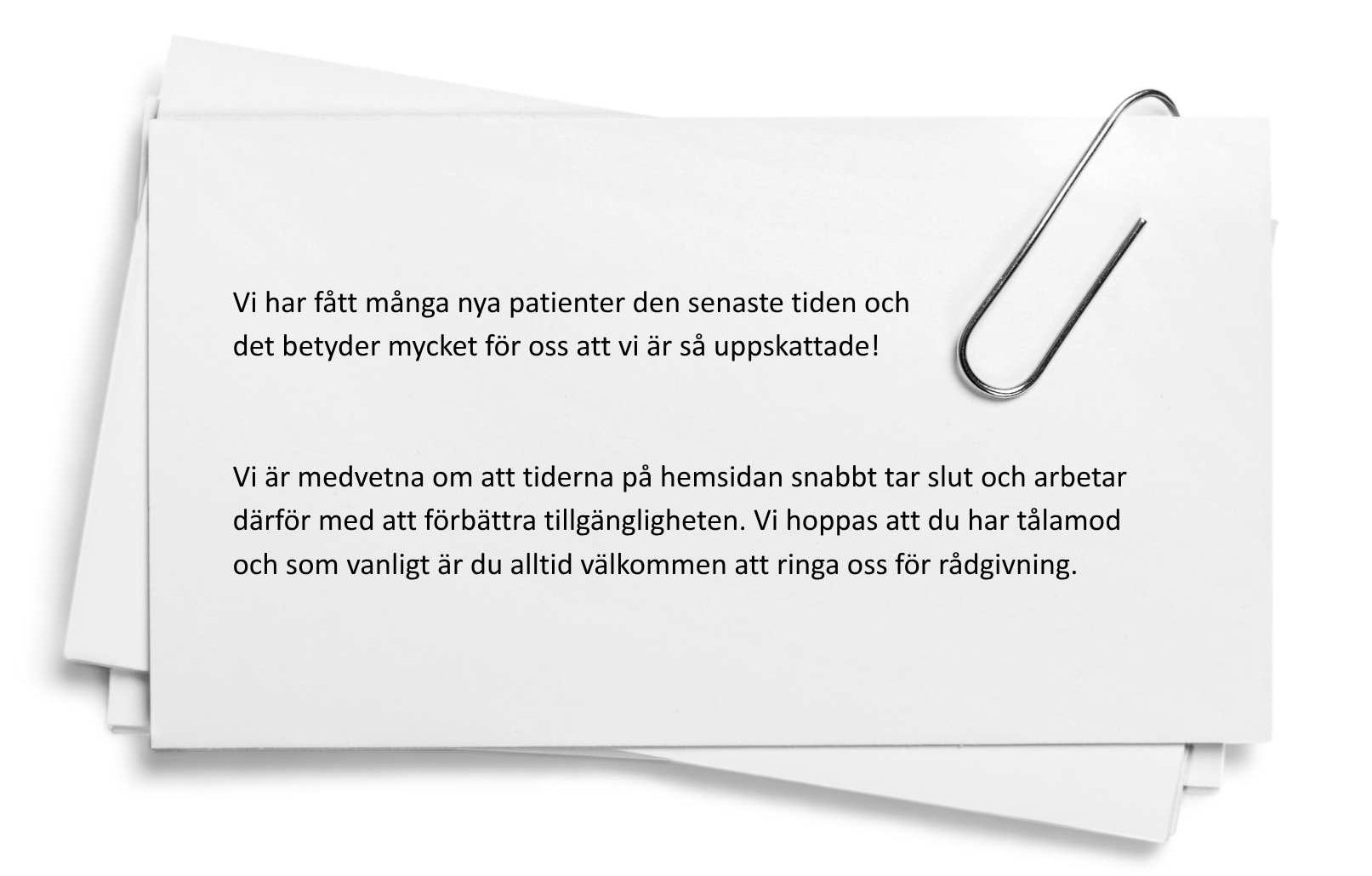 | Tisdag | 08.00-19.30 | Boka här | 13:00-15:00 | 08.00-12.00 |